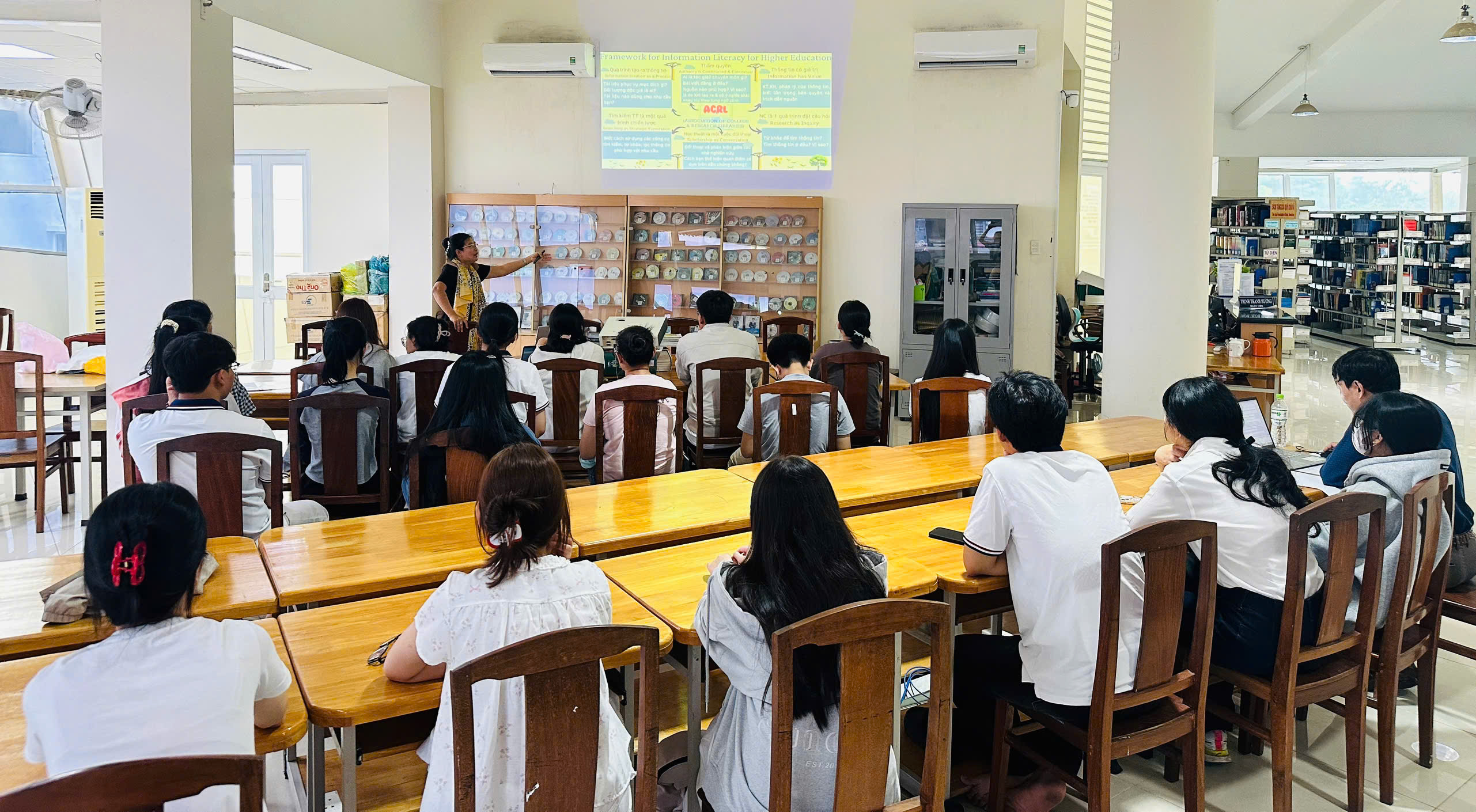 Sáng ngày 24/09/2025, Trung tâm Thông tin – Thư viện Trường Đại học Ngân hàng TP.HCM đã tổ chức Lớp hướng dẫn sử dụng Thư viện đầu tiên vào đầu năm học mới. Buổi học diễn ra vào lúc 9h, với sự hướng dẫn của cô Dương Thị Chính Lâm – chuyên viên Trung tâm, thu hút sự tham gia của hơn 20 thành viên là giảng viên và sinh viên (chi tiết)