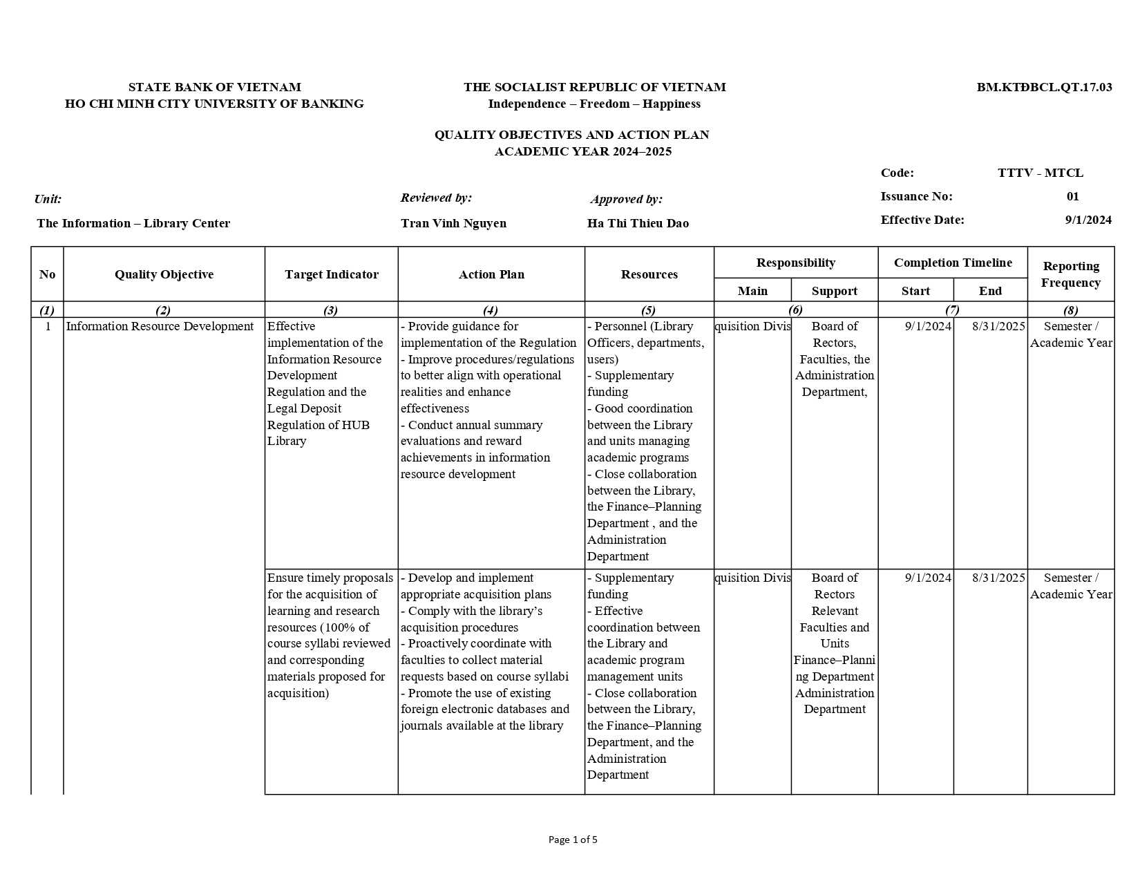 LIST OF PROCESSES AND QUALITY MANAGEMENT SYSTEM REPORTS Academic Year 2024–2025