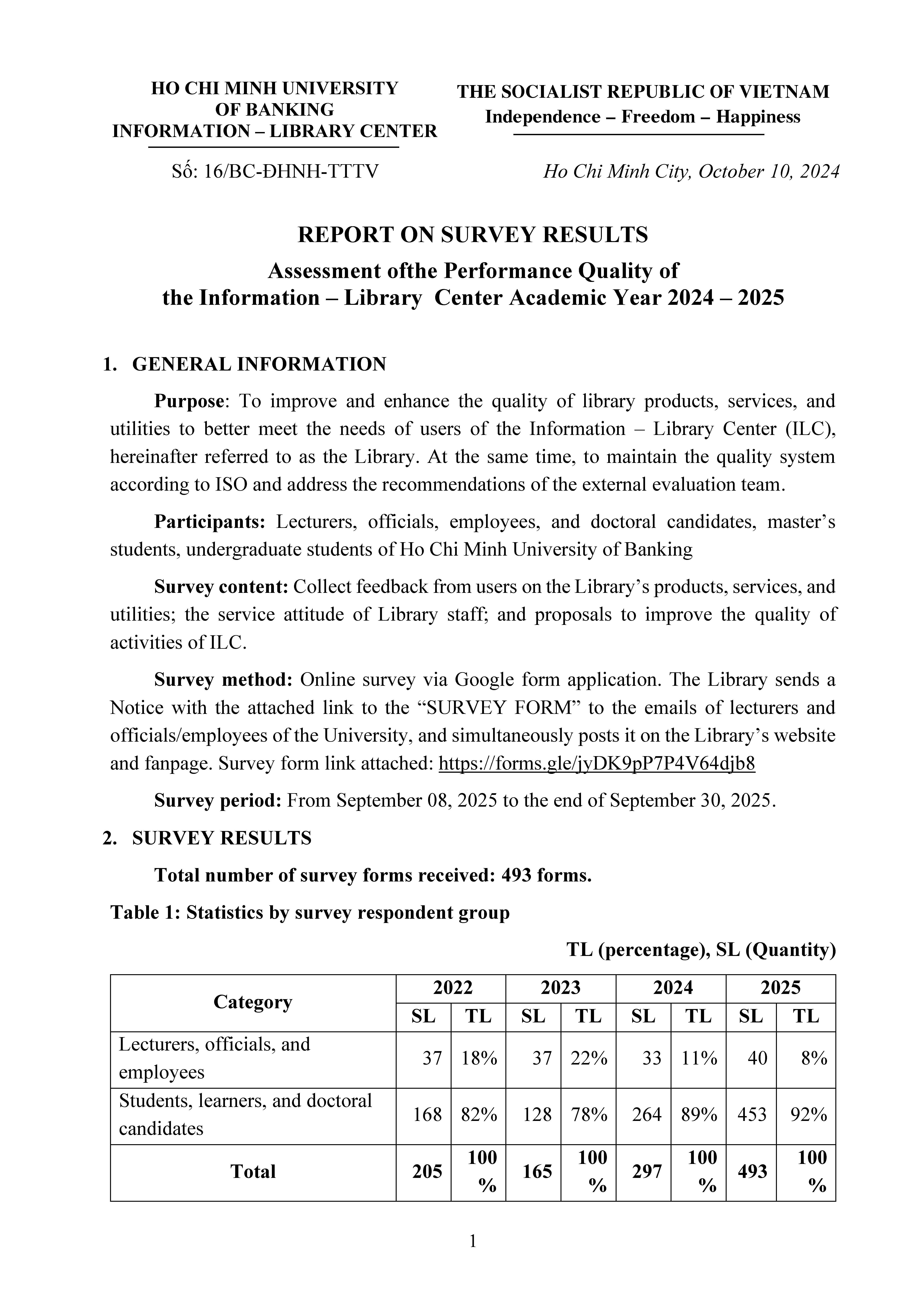 Report on survey results Regarding evaluating the quality of Library operations for the 2024– 2025