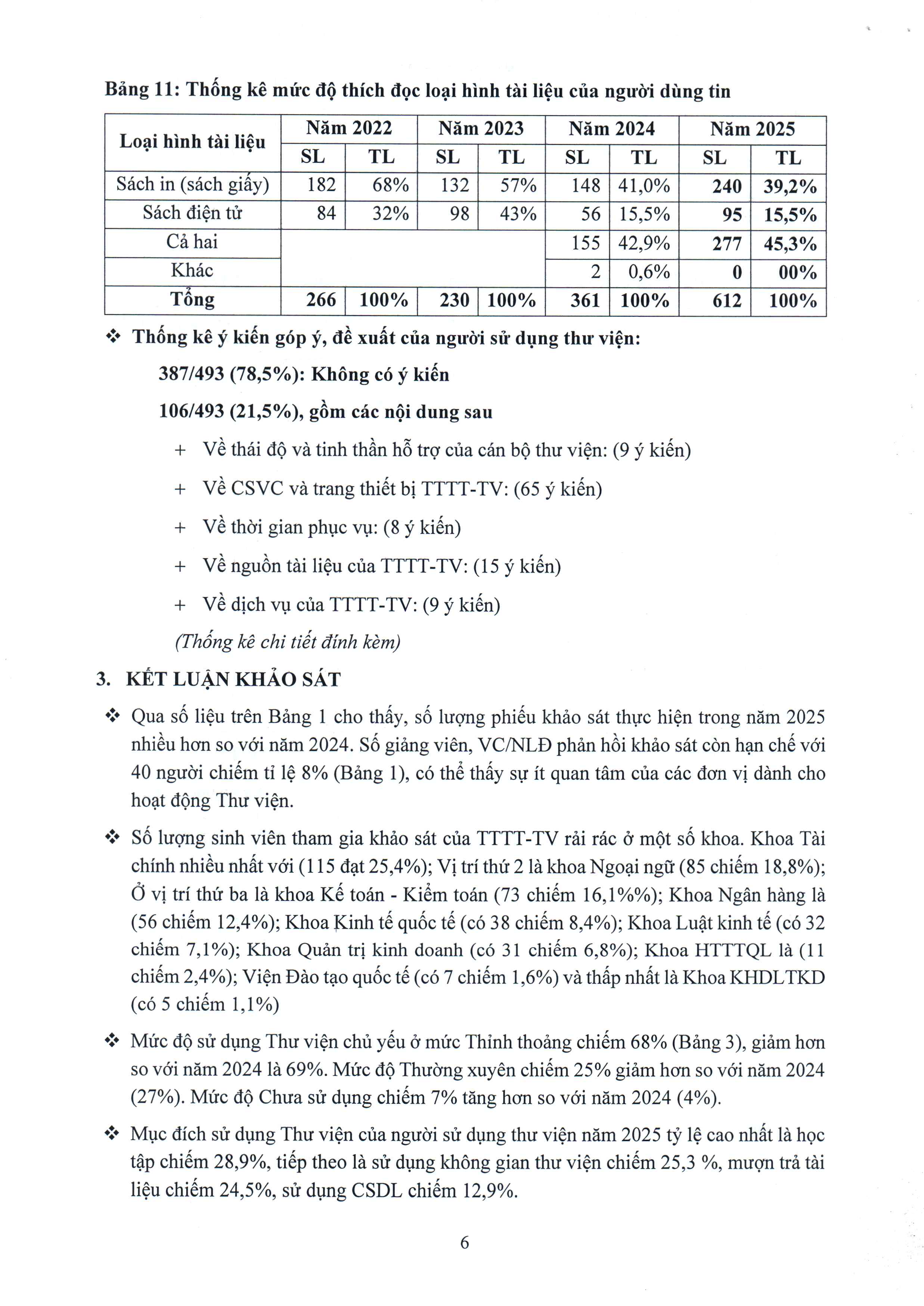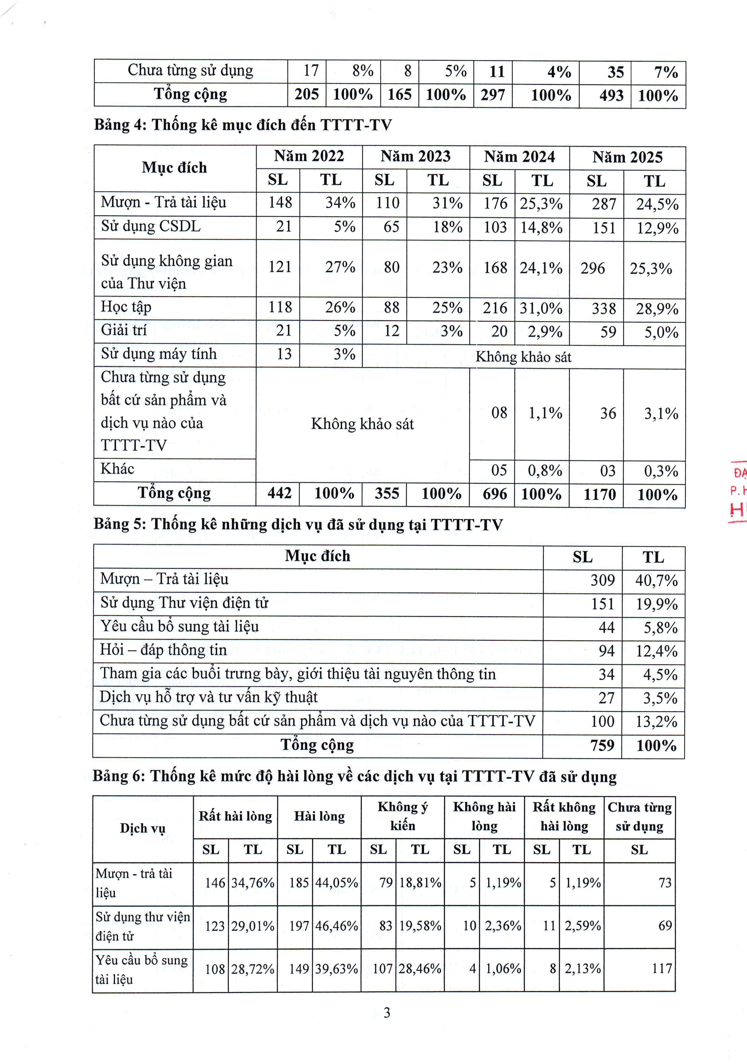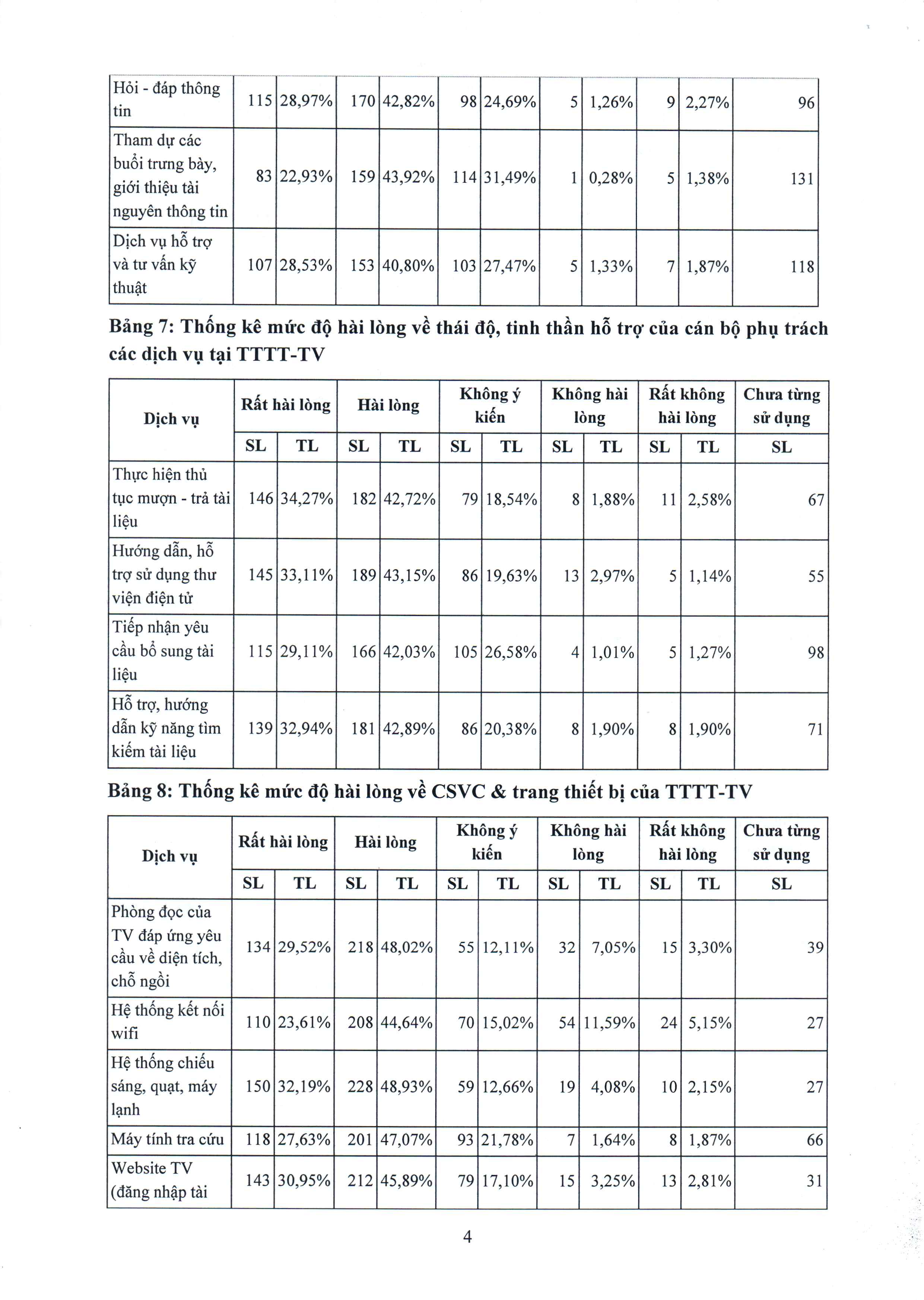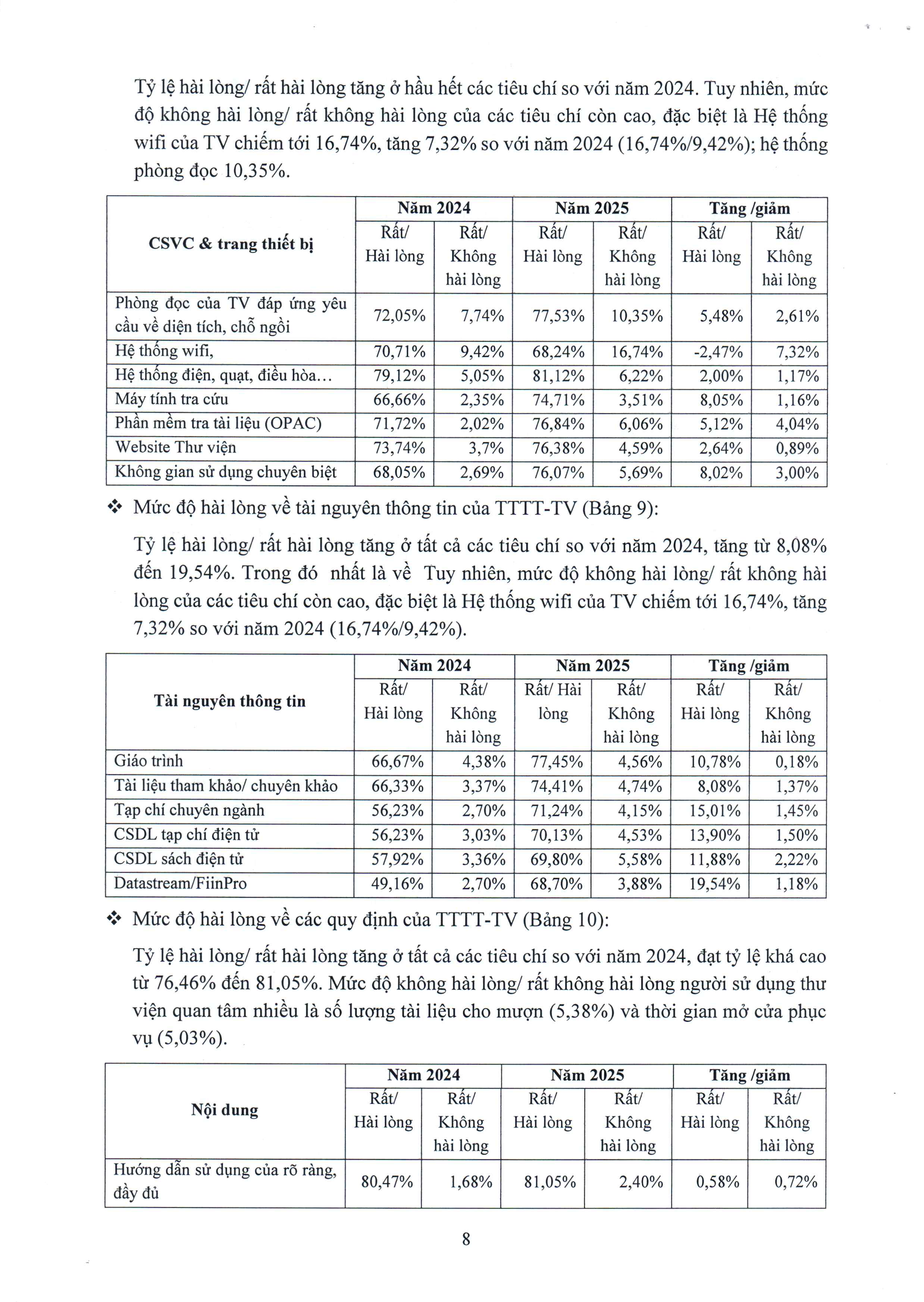 Báo cáo kết quả khảo sát về việc đánh giá chất lượng hoạt động Thư viện năm học 2024-2025