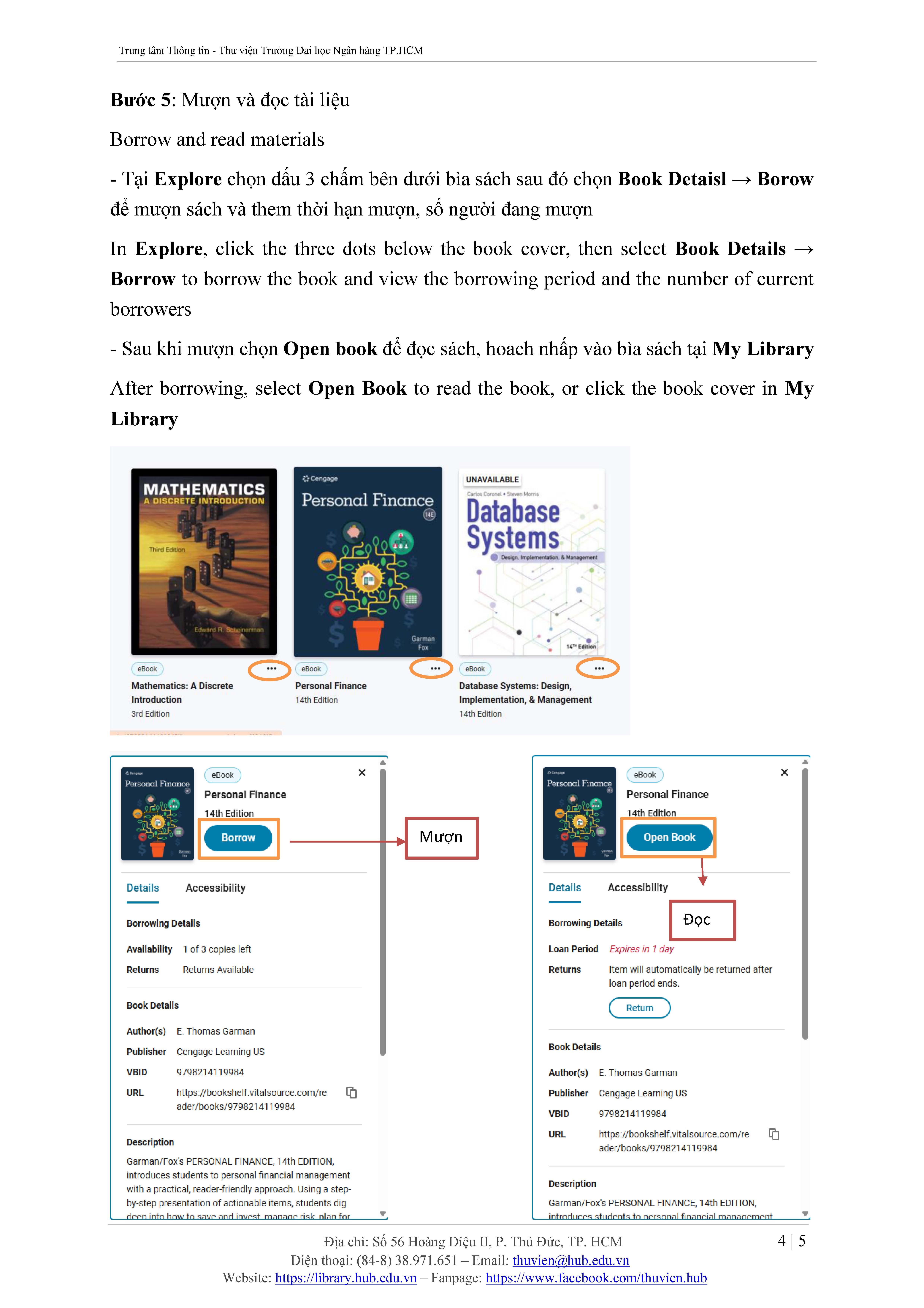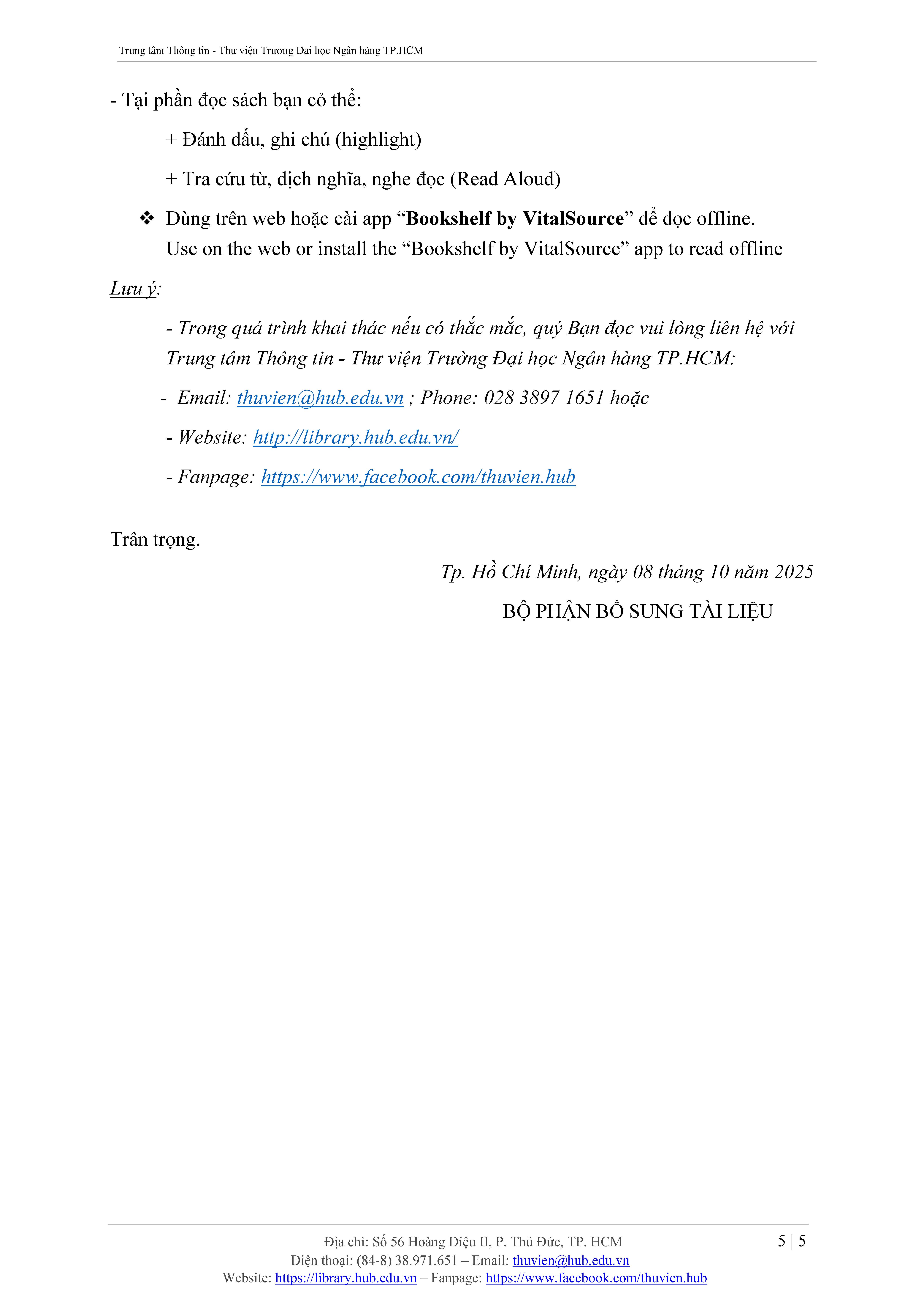 Nhằm giúp bạn đọc học tập – nghiên cứu hiệu quả hơn, Trung tâm Thông tin – Thư viện đã cập nhật sách mới và cung cấp hướng dẫn sử dụng VitalSource Explore.